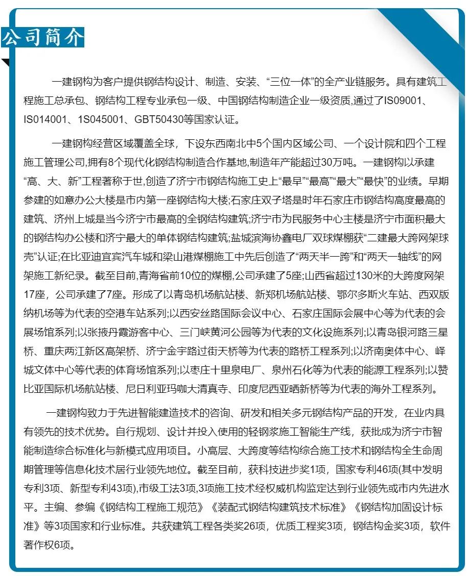 濟寧一建鋼結(jié)構(gòu)工程有限公司承建的金屬屋面及維護工程,涉及1#-4#物流倉庫、高架立體庫。倉庫跨度80米,屋面標(biāo)高34.1米,為雙向找坡結(jié)構(gòu)。該項目建設(shè)規(guī)模大、工期緊、技術(shù)精度要求高、工況復(fù)雜,自項目開始施工。公司對現(xiàn)場管理嚴(yán)格要求,積極配合業(yè)主及總包的整體調(diào)配,施工嚴(yán)格執(zhí)行施工方案,遵循規(guī)范標(biāo)準(zhǔn),合理安排人、機、料等,戮力同心將馬士基臨港旗艦倉項目打造成精 品工程、優(yōu) 質(zhì)工程。
